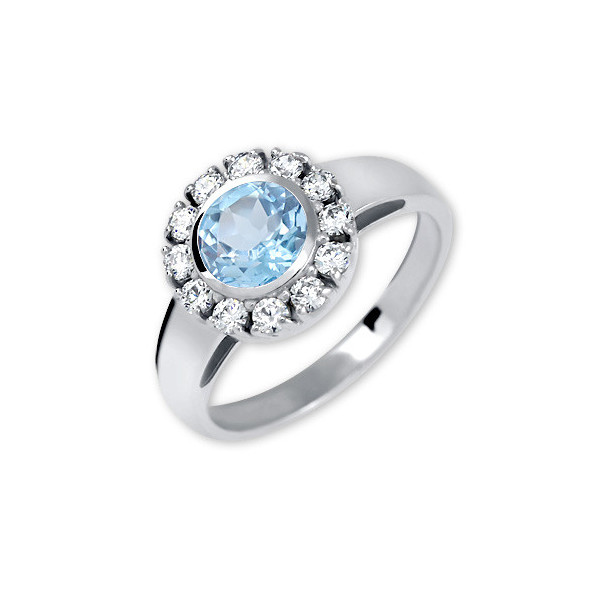 Prsten s brilianty a akvamarínem
