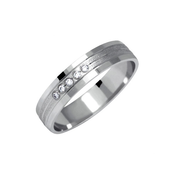Snubní prsten s drážkami a 5 brilianty