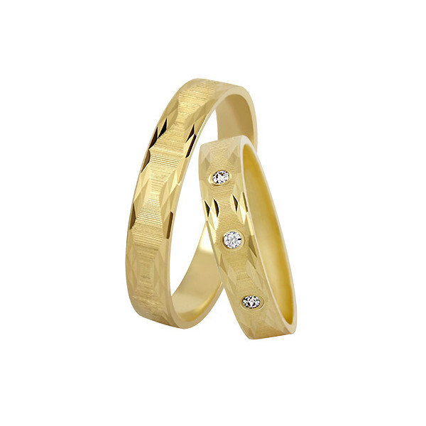 Prsten s pyramidovým rytím a brilianty